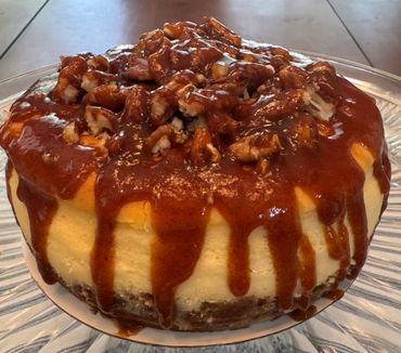 Pecans topped with Homemade Salted Caramel and a Custom created Chocolate Sauce made with Ghirardelli ™Chocolates. Drizzled over a traditional cheesecake with an Oreo™ and Pecan Crust